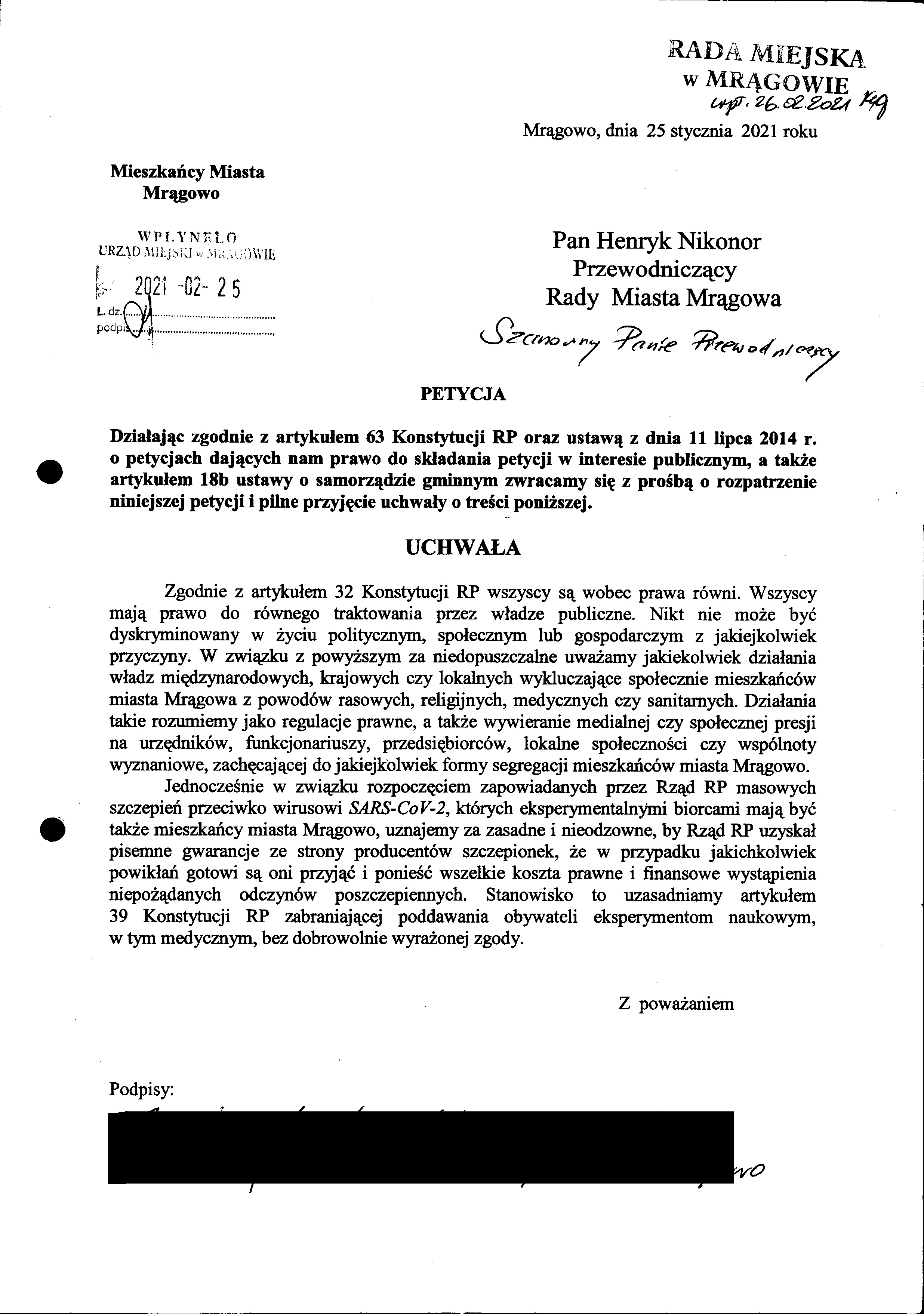 - Petycja w sprawie szczepień przeciwko COVID-19_Mieszkańcy Miasta Mrągowo_ str. 1, 25.02.2021