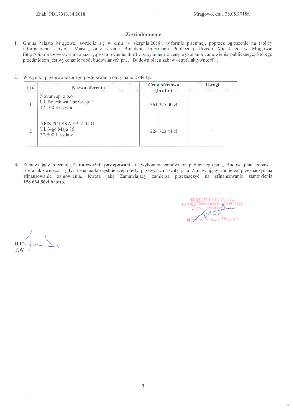PBI.7013.84.2018 Mrągowo, dnia 10.08.2018r.