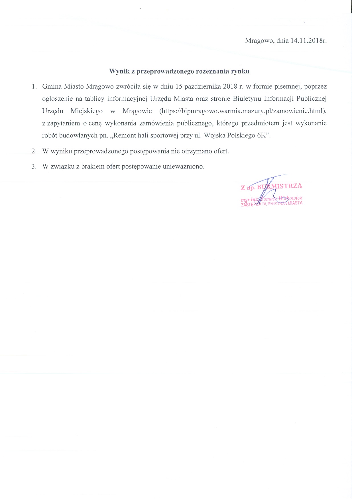 PBI.7013. 40. 2018 Mrągowo, dnia 08.10.2018r.