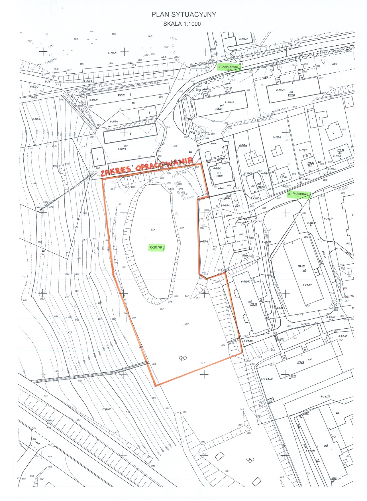 Przedmiotem zamówienia jest opracowanie dokumentacji projektowo-kosztorysowej na zagospodarowanie terenu rekreacyjno-sportowego zlokalizowanego na zapleczu ulic: Sienkiewicza, Plutonowej i Żołnierskiej, na nieruchomości nr ewid. 207/9 obręb 6.